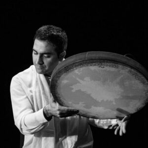 Ebrahim Ahmadi is a multi-instrumentalist Kurdish musician from Iran, playing traditional percussion instruments (daf, dayereh, dahol and bendir) as well as the setar. Born in the Kermanshah province during the Iran-Iraq War, Ebrahim grew up surrounded by the sound of Sufi music echoing through the Kurdish mountains. Drawn to the daf — a large circular frame drum covered with animal skin and embellished inside with a chains of metal rings giving it its distinctive timbre — he began playing it at Sufi events. His formal training started at the age of 13 under the guidance of the renowned master of the instrument Jawad Azizi.