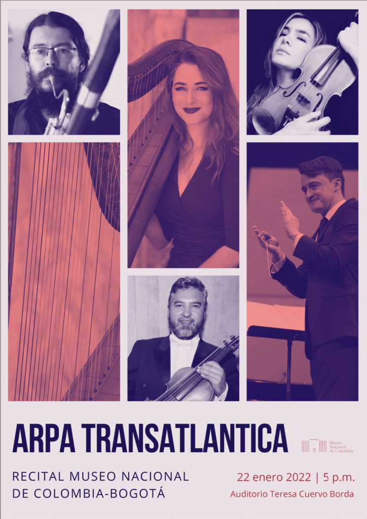 Soirée exceptionnelle au Museo Nacional de Bogota (Colombie) ! Au cours du concert « Arpa transatlantica », Maia Darmé jouera, accompagnée d’un piano, violon, violoncelle et basson, le concerto « Solstice Lunaire » de Carlos Andrés MejÃa Zuluaga ainsi qu’une création mondiale du même compositeur.