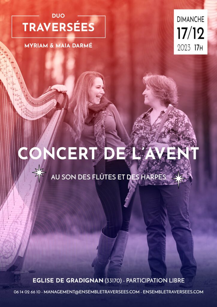 Des harpes et des flûtes, mais une soirée peu classique ! C’est un voyage commenté au travers des siècles, des continents et des styles musicaux que proposent Myriam Darmé (flûtiste) et Maia Darmé (harpiste). Les deux musiciennes de l’étonnant duo Traversées ont concocté un programme varié et virtuose dont elles signent tous les arrangements, des musiques du monde aux compositeurs actuels en passant par des chefs-d’œuvre du classique. Une belle découverte !